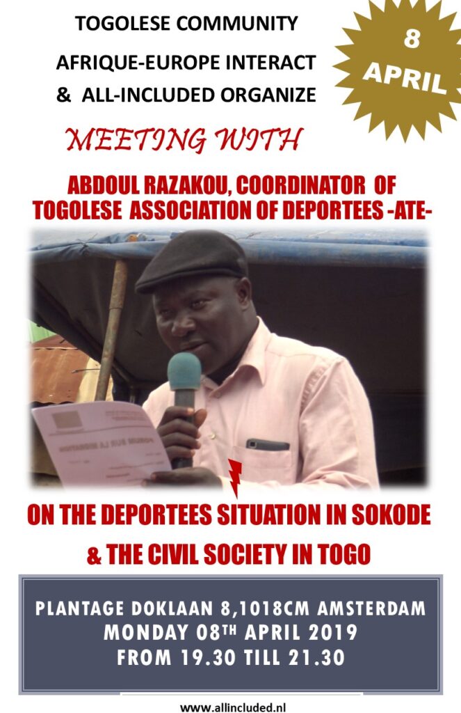 Monday 08th of April 7.30pm at Dokzaal, Plantage Doklaan 8, 1018 CM Amsterdam – organizers: Afrique-Europe Interact, All Included and Togolese Community